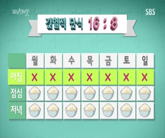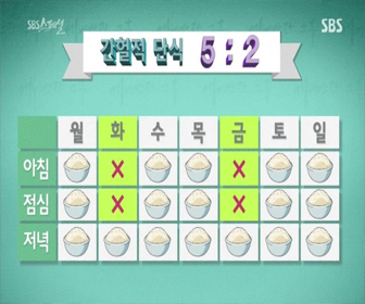 이것은 매주 2일만 아침그리고 점심을 같이 거르고 저녁 식사를 하는 것입니다.