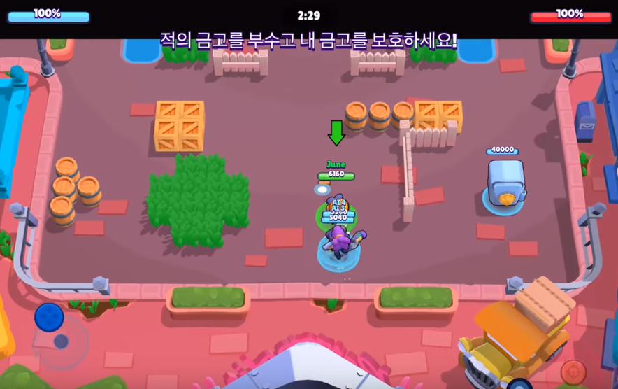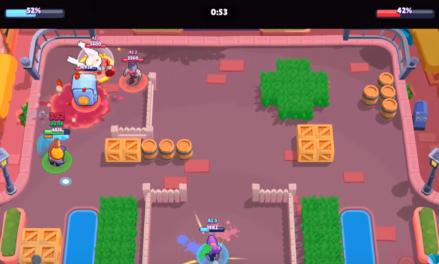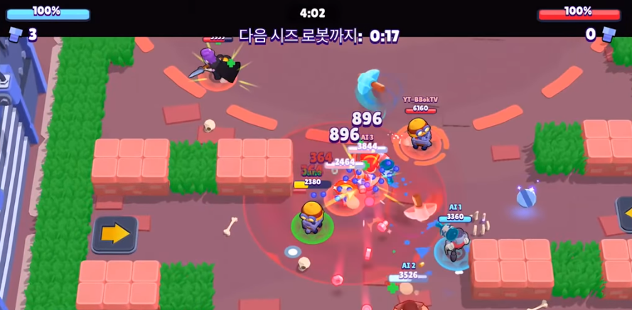 대릴이라고 합니다. 3번이나 공격을해서 처치해야했던 브롤러들을 보통 2번의 공격만으로 처치를 할 수 있다는 장점이 있습니다. 거기에 추가적으로 스타파워의 피해 감소량 증가 버프까지 더해져서 지금은 더더욱 게임을 하는데 있어서 효율적인 아이 입니다.