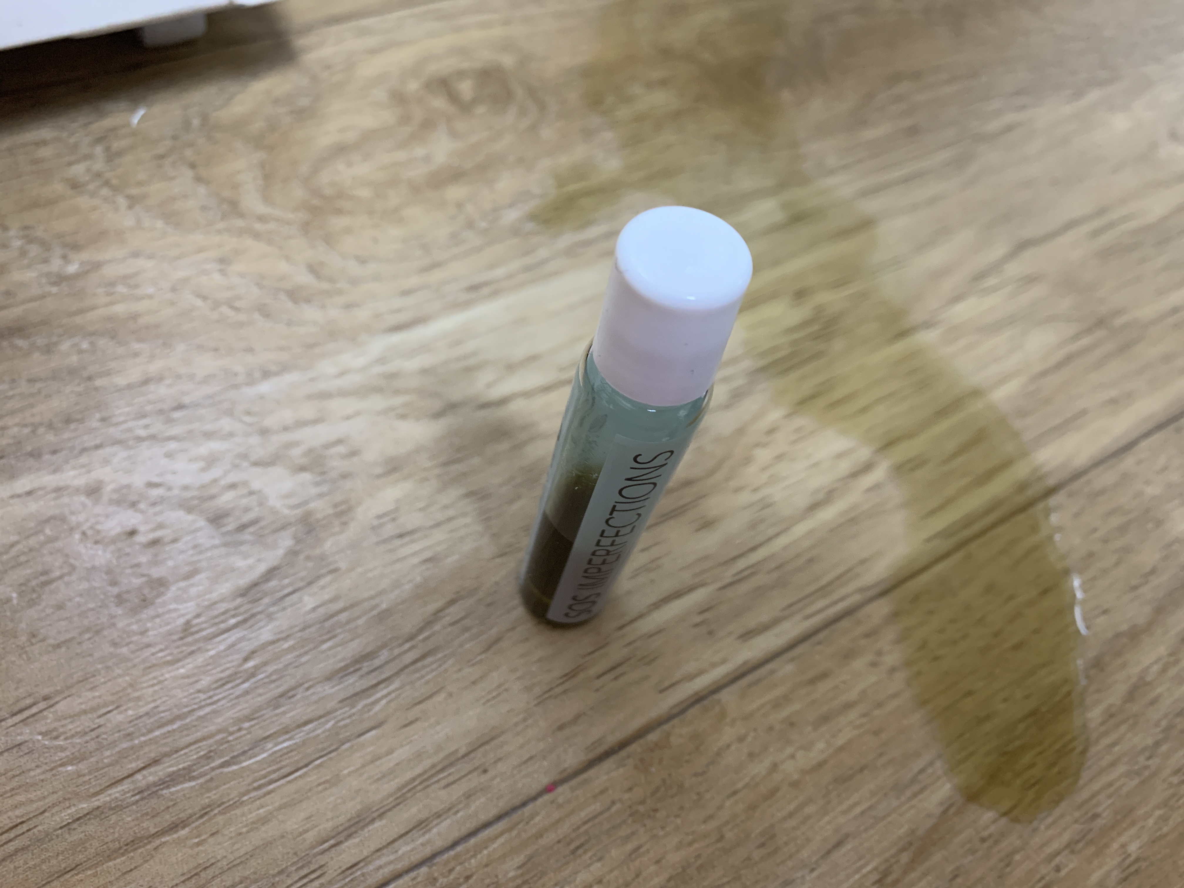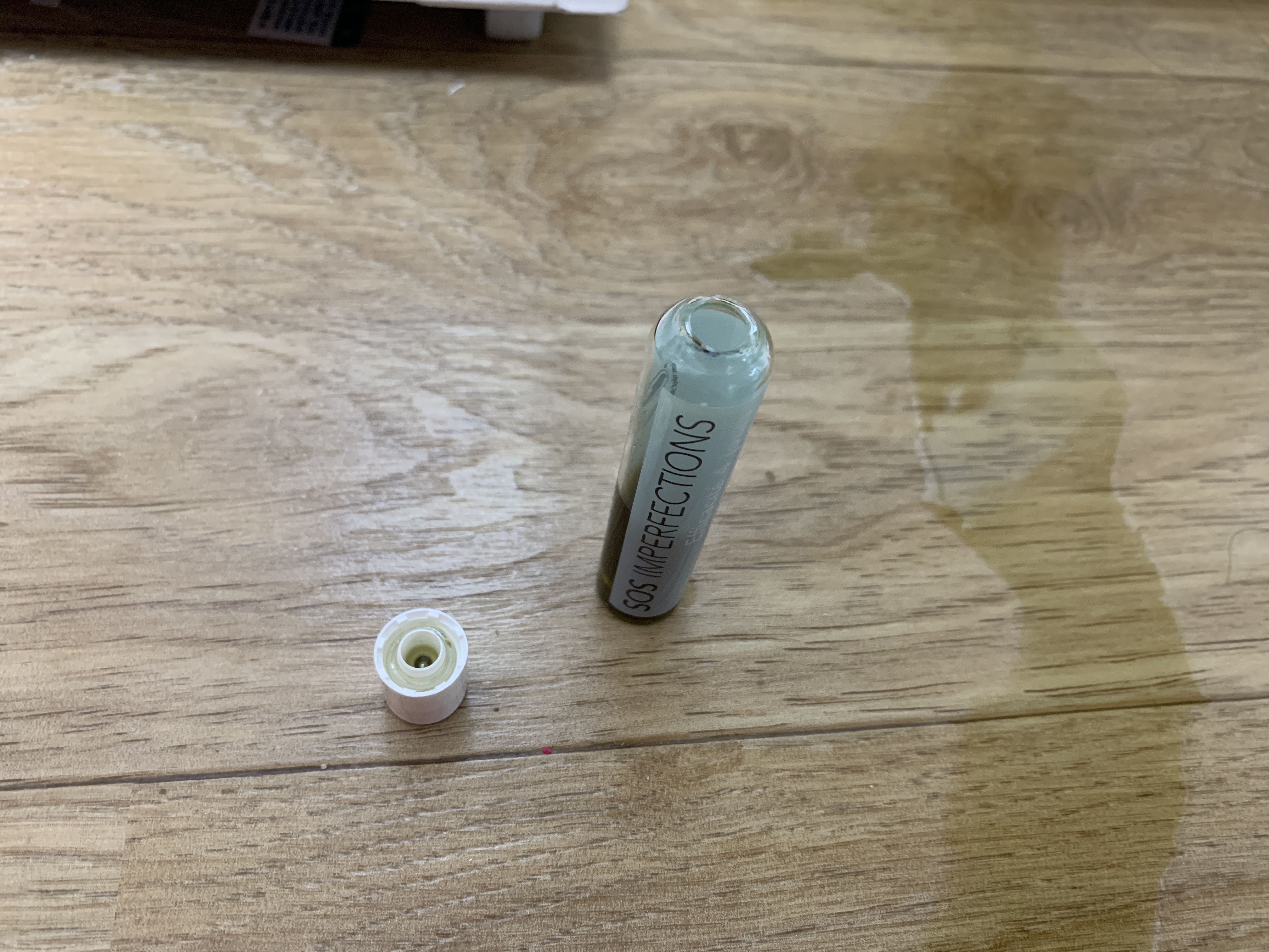 티트리 여드름 앰플 장만한지 얼마 안됬는데 책상위에 놔뒀더니 돌돌돌돌 굴러가서 땅바닥에 떨어졌어요. 근데 괜찮겠거니 했는데 위에 볼하고 있는 유리병의 목 부분이 저렇게 깨져서 분리가 됬더라고요. 집에는 티트리 냄새 완전 장난아니고...