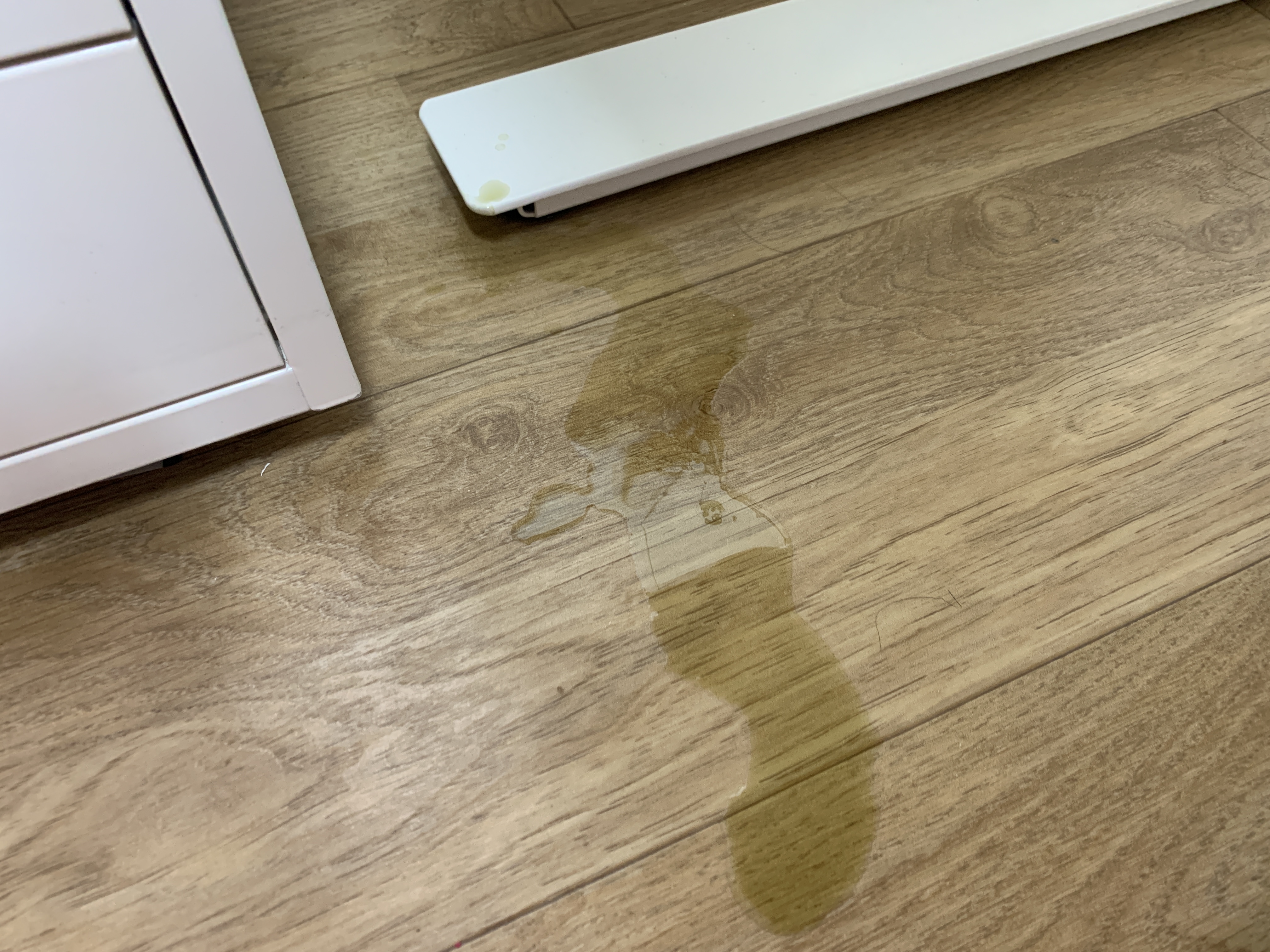 보면서 완전 망연자실. 책상 다리에도 묻고.... 뭐 치우는건 문제가 안되는데 문제는 장만한지 얼마 되지도 않았는데 깨져서 사용을 못한다는 거죠.