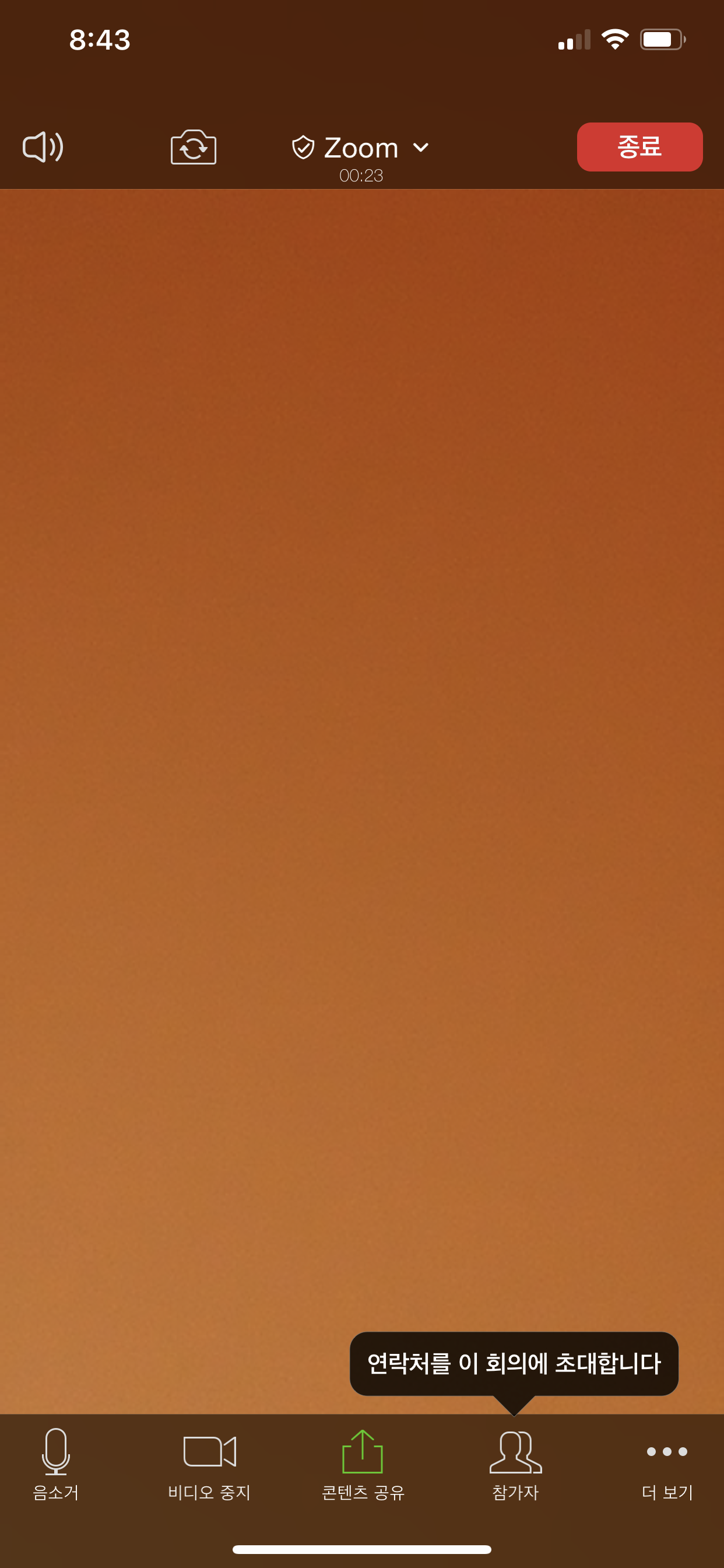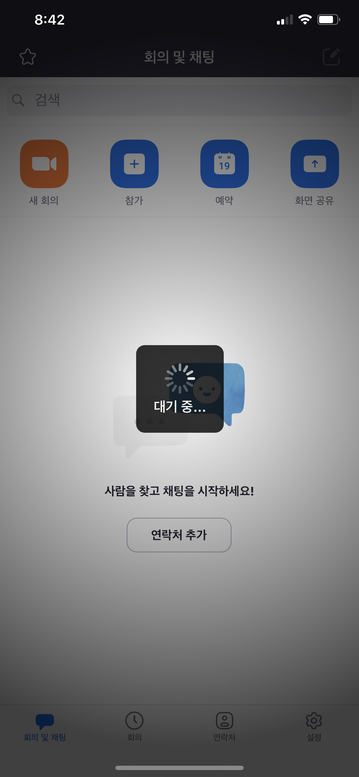 회의 접속 또는 새회의를 눌러서 접속했을 경우 이렇게 대기중이라는 창이 뜨게 되는데요. 잠시 기다리면 바로 이어서 접속이 됩니다.