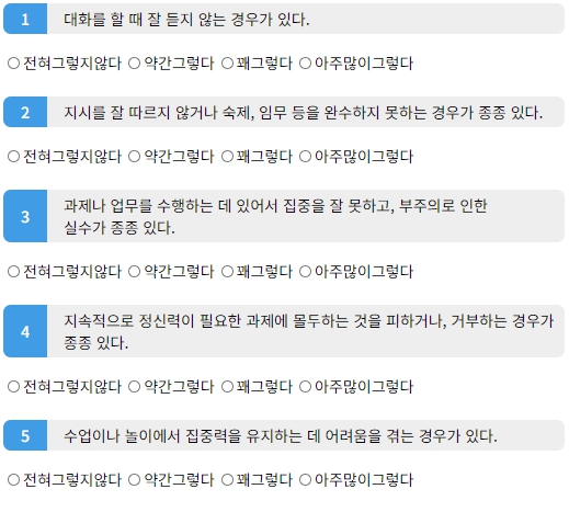 내가 ADHD인지 궁금하다면, 아래의 온라인ADHD 검사로 확인해 볼 수 있습니다.